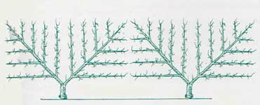 uelques fruitiers en gobelet sur demi-tige, ou en vase, au milieu des planches, quelques pommiers ou poiriers en cordons le mong des allées ou encore des fruitiers en espaliers le long des murs dont la forme en palmette carrée