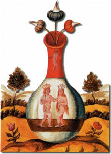 - que les jardins empruntent les métaphores de la mythologie tout comme l'alchimie; ainsi le jardin, composé d'éléments mythiques pourra être mis en relation avec le processus alchimique;