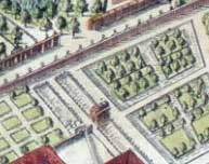 Plan partiel de Saint-Germain., copiés sur les "jardins des merveilles" itaautors, sont créés des jardins où des automates animent des scènes aquatiques, des orgues hydrauliques, des mécanismes simulant le cri des oiseaux, tout un petit monde merveilleux qui forcent l'admiration et semblent s'opposer aux lois naturelles. Ces jardins disparaitront et seuls resteront les descriptions faites par quelques lettrés qui eurent la chance de les visiter.