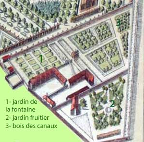 Du jardin du bas étaient percées cinq portes, une vers le château, deux vers le jardin haut, une vers la campagne et deux vers les jeux de paume.