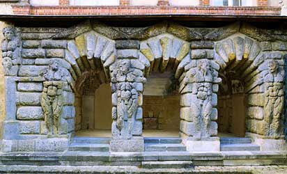 en rocher publiés au XVIIe siècle mais est attesté que Delorme bien avant Le Bernin utilisait la simulation de la roche naturelle pour ses oeuvres rustiques, ce qui lui permettra par cette technique, de passer à la postérité.